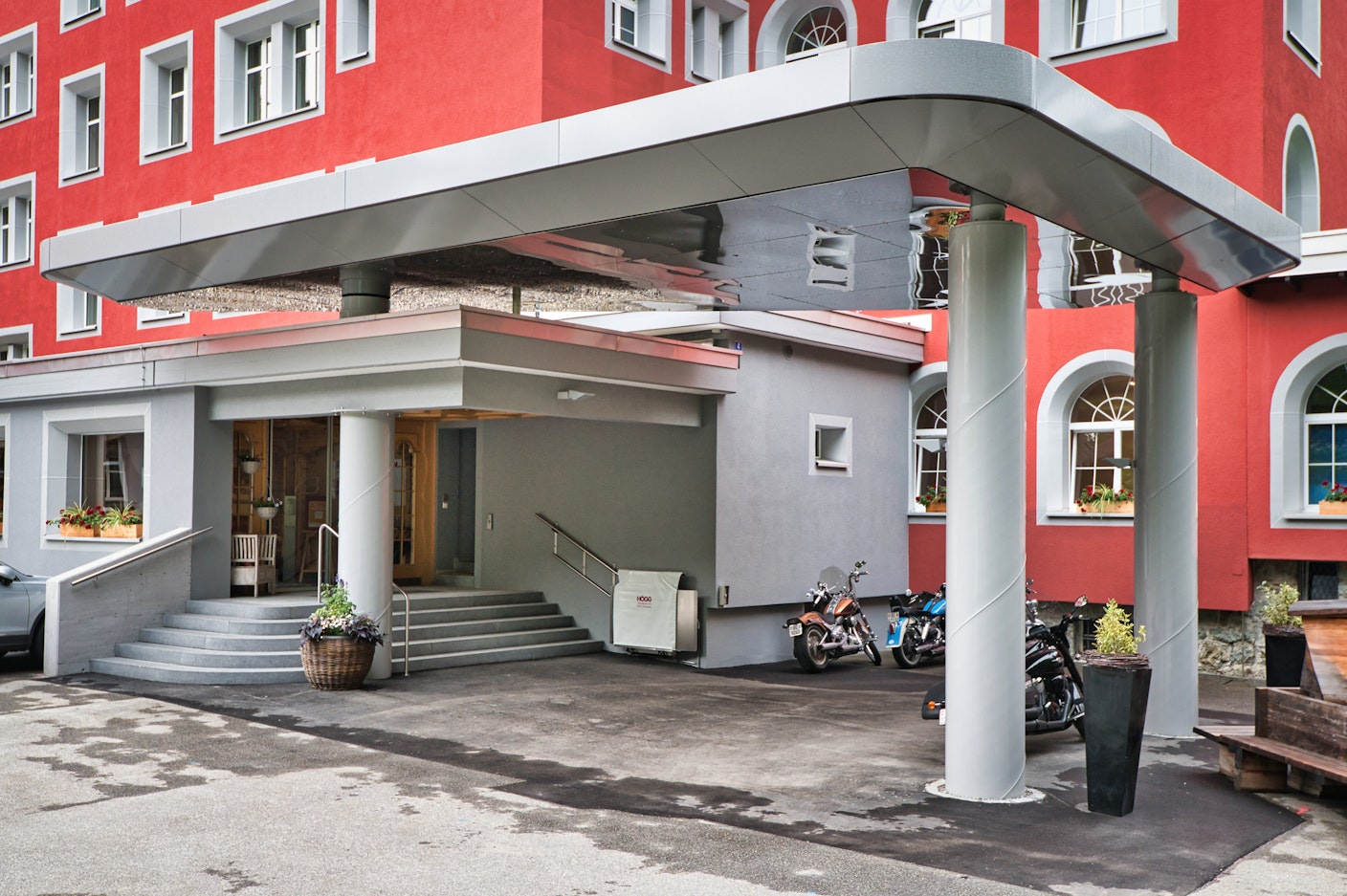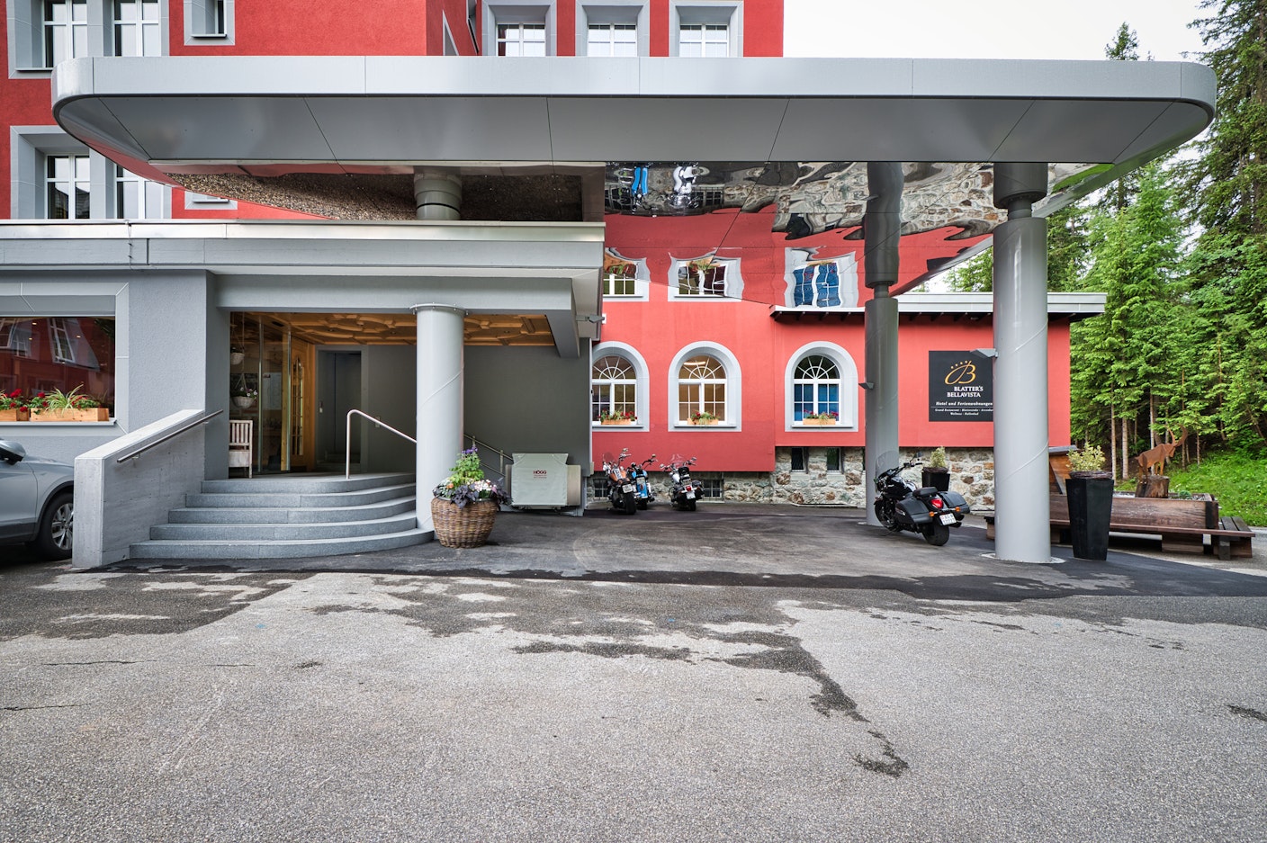Vordachkonstruktion für Haupteingang mit spiegelglanzpolierter Untersicht