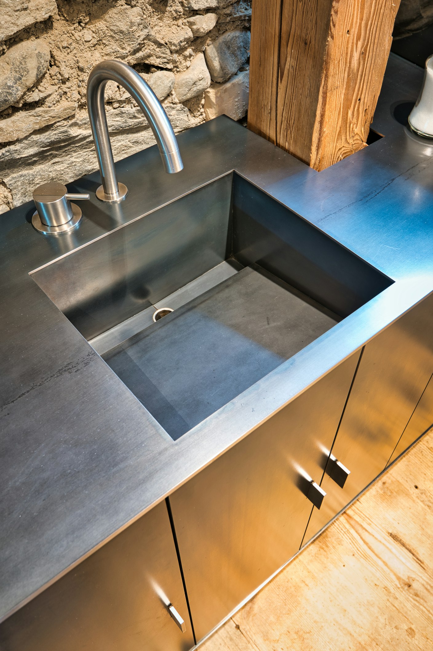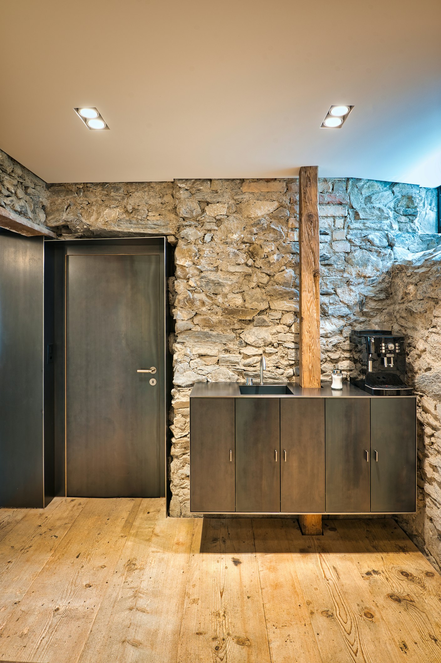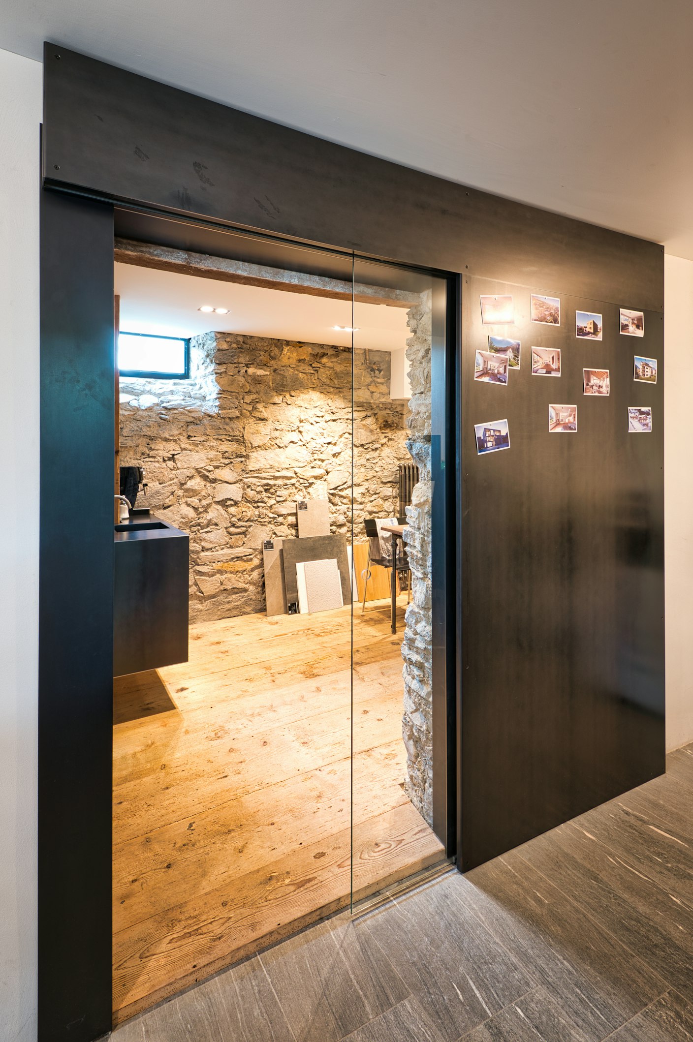 Schwarzblech Möbel mit Glas-Schiebetüre
