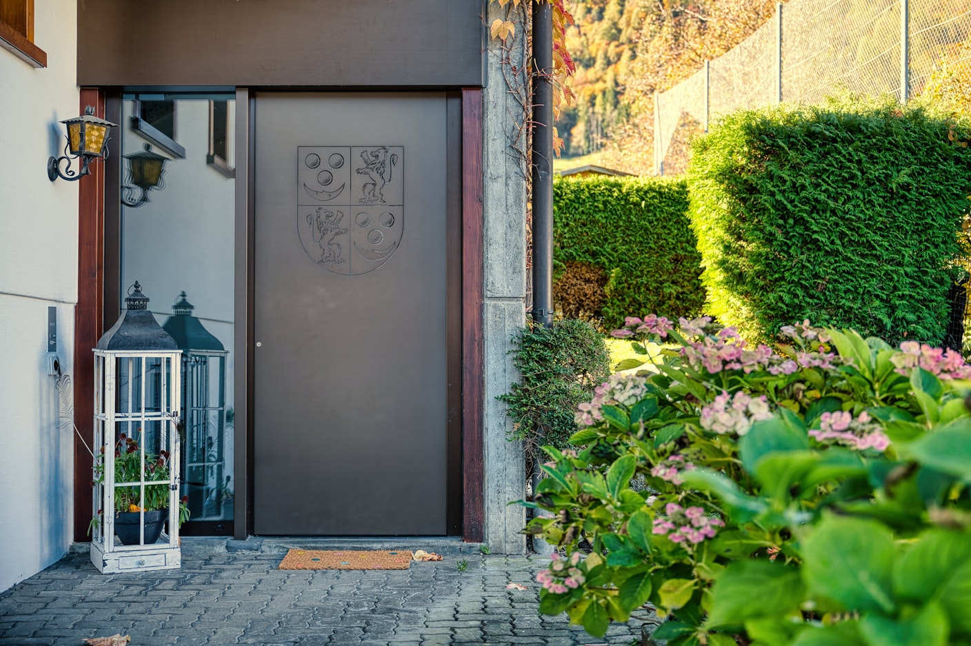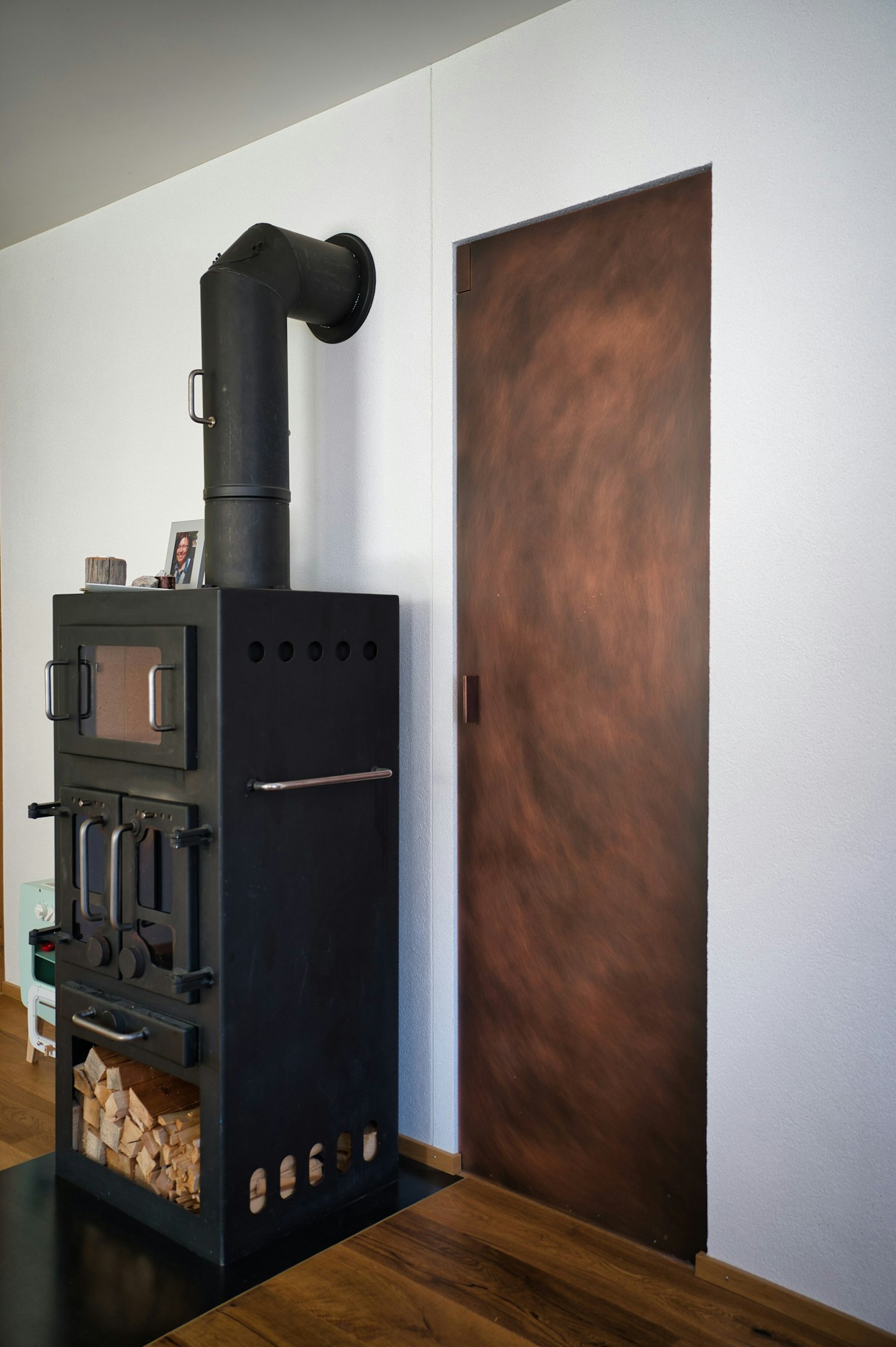 Schiebetüretüre aus Kupfer brüniert mit Wirbelschliff