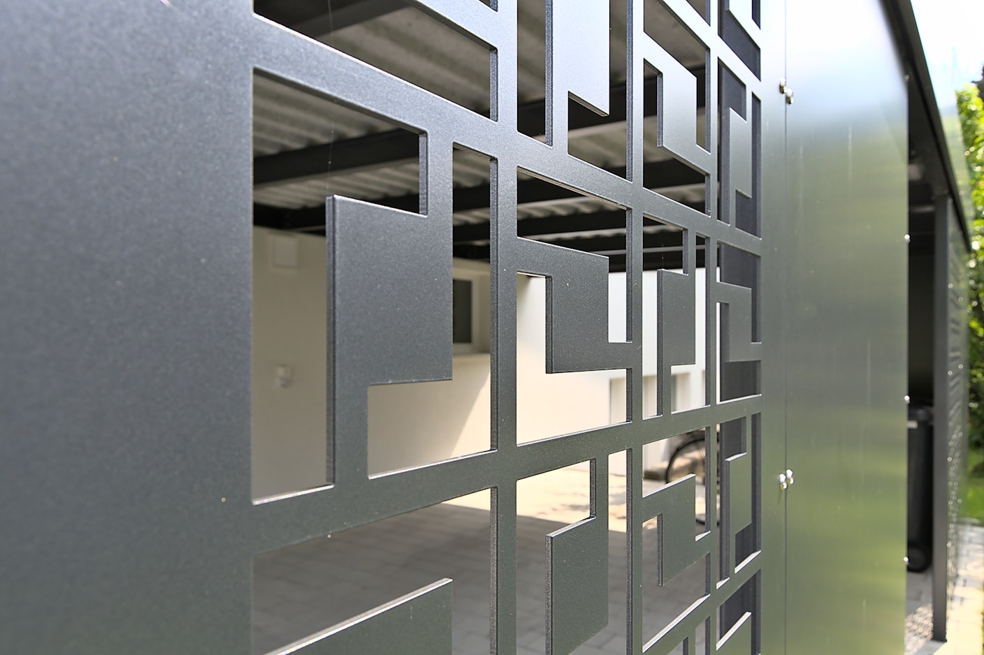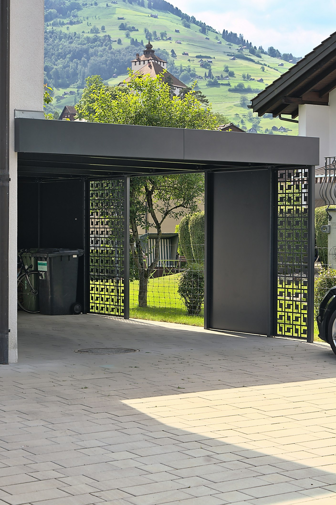 Carport aus verblechter Stahlkonstruktion