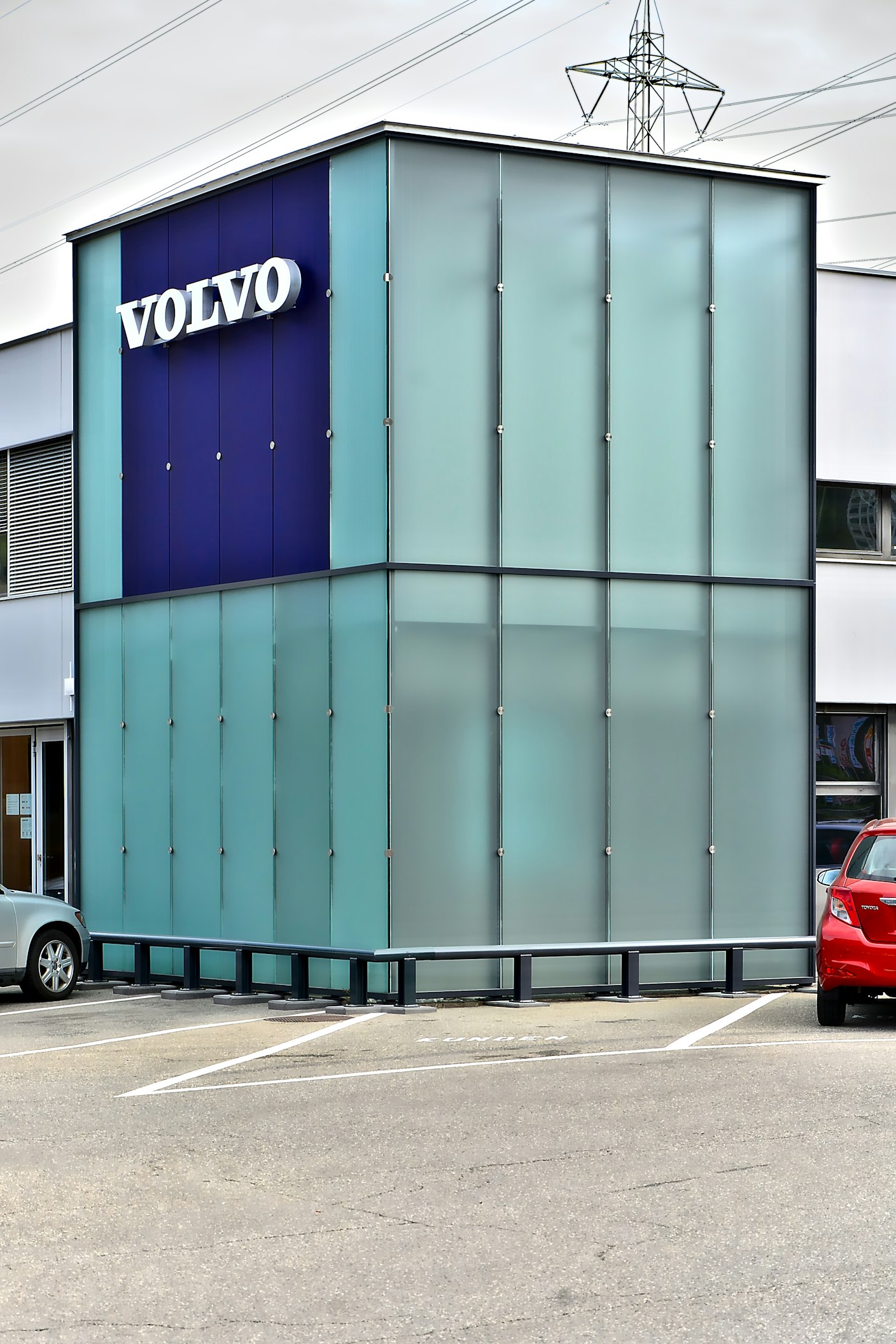Verglaster Kubus aus Stahl und Glas