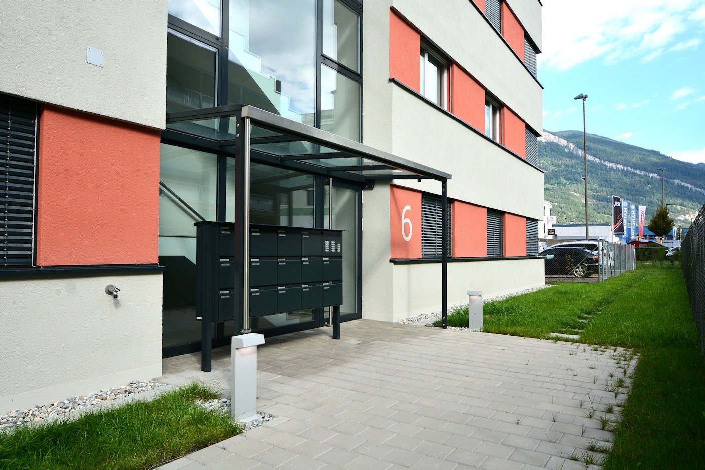 Vordachkonstruktion in Stahl verglast