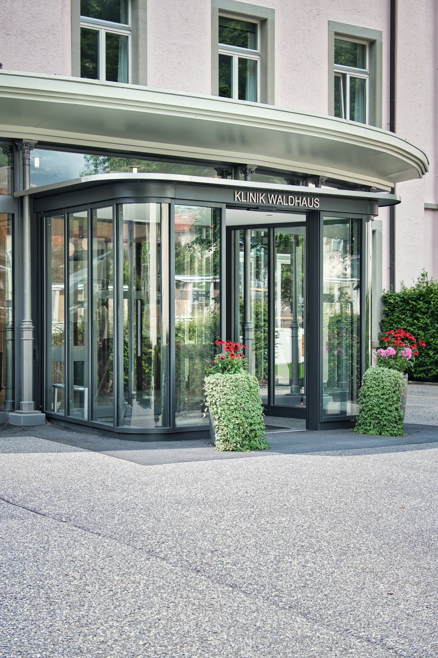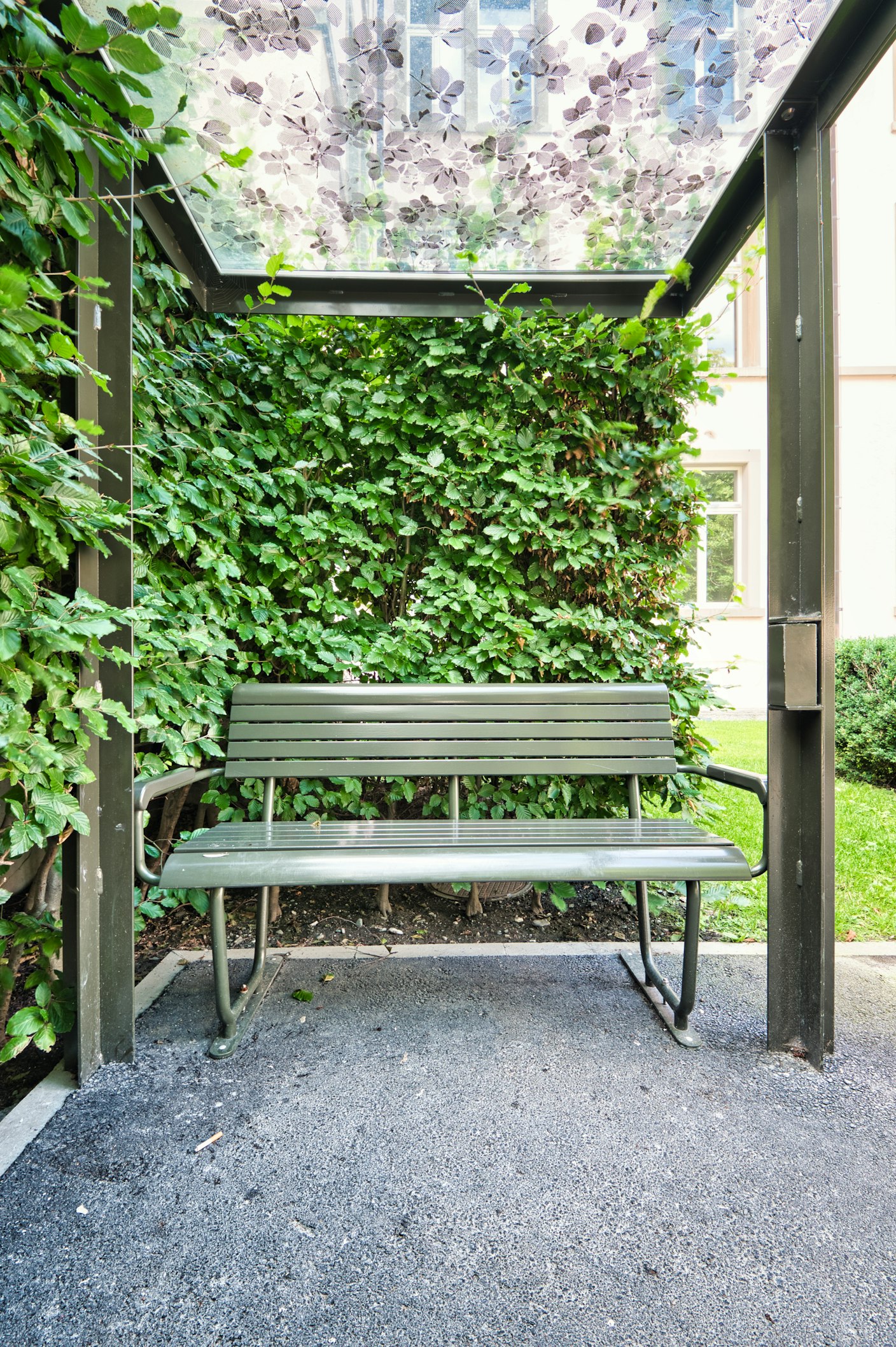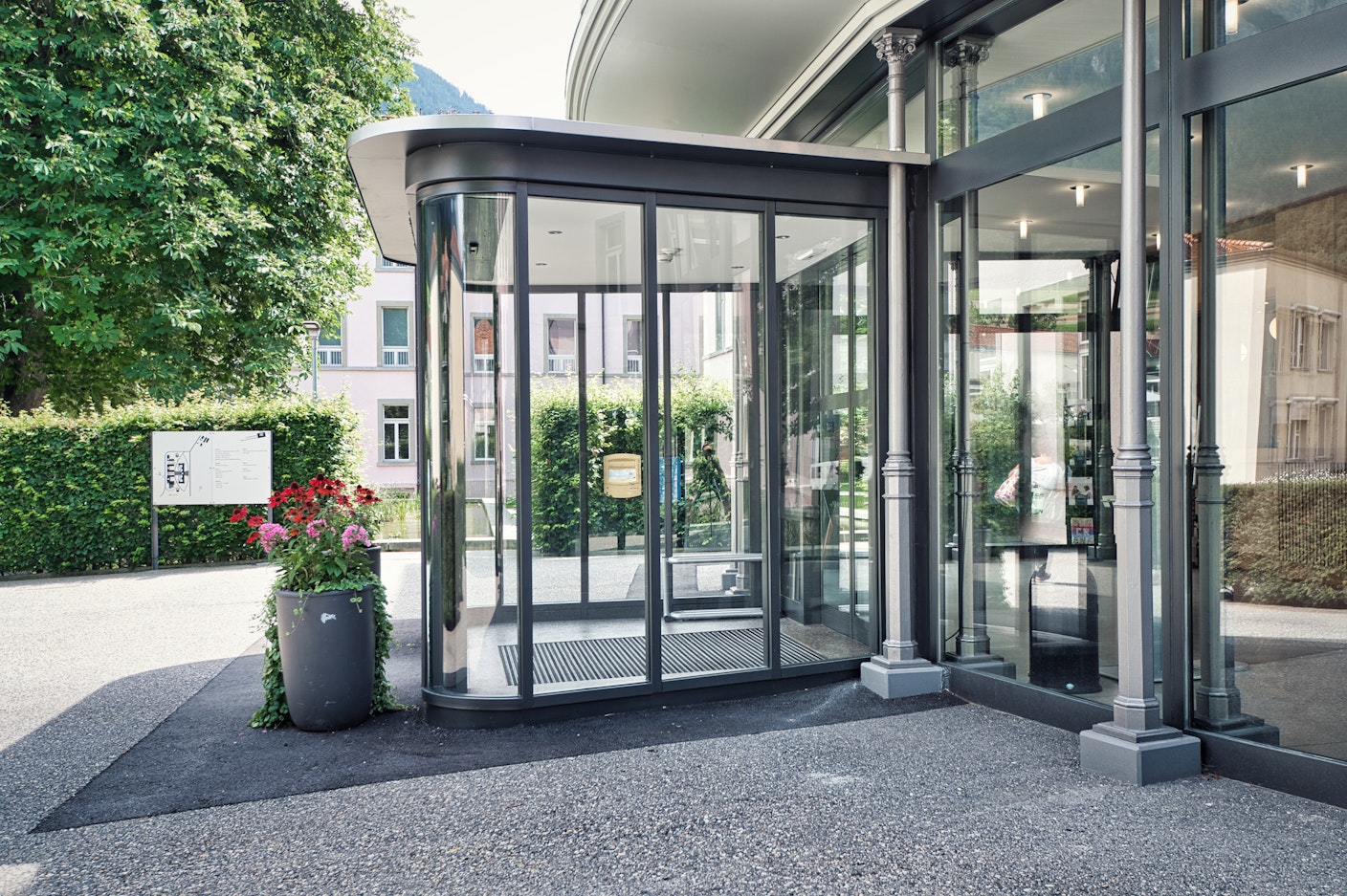 Windfangkonstruktion in Stahl mit Bogengläsern