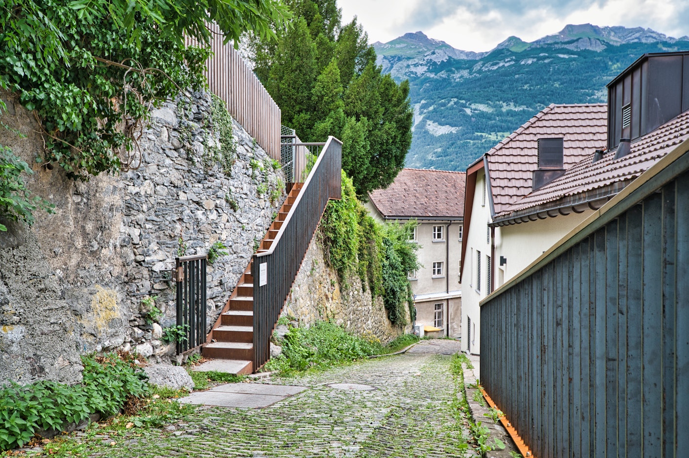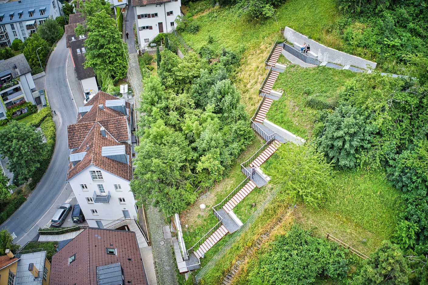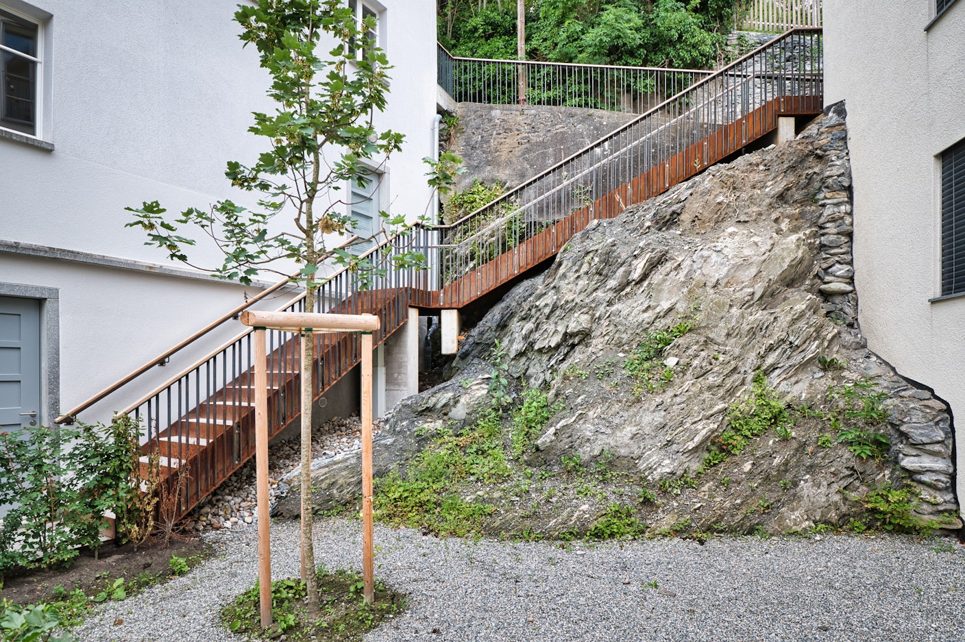 Treppenanlage in Stahl roh mit verzinkten Gitterrost-Tritten