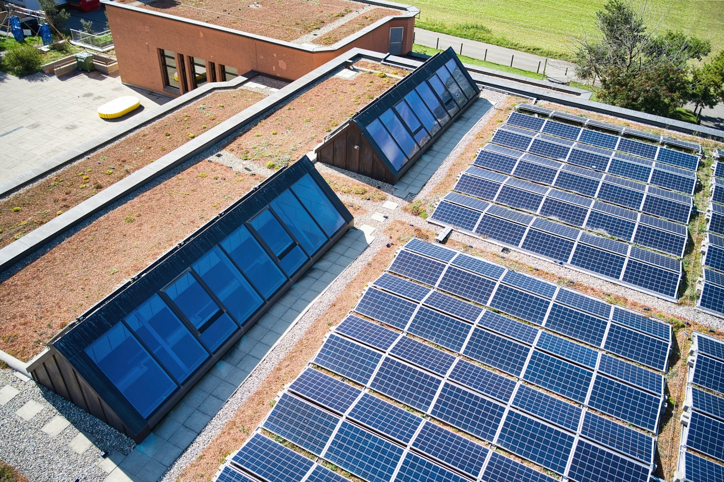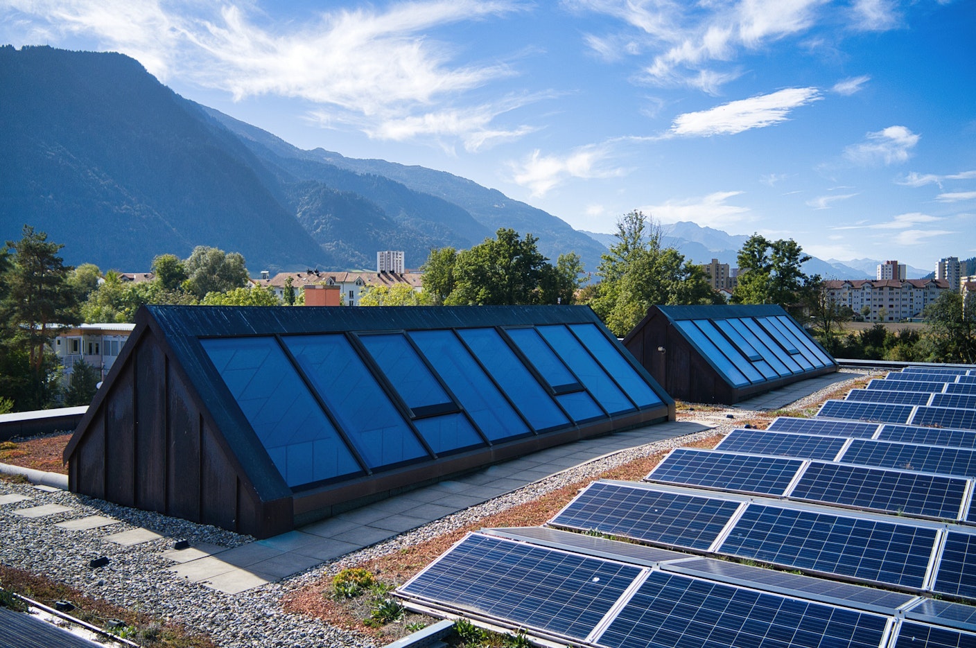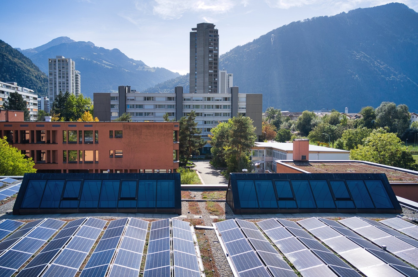 Oblicht Verglasungen über Turnhalle mit Lüftungsflügeln